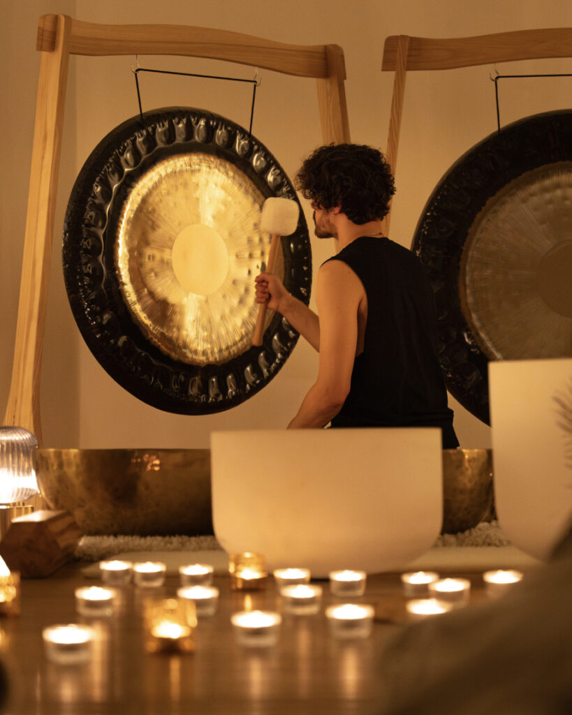 Immerse yourself in the powerful vibrations of the gongs and experience deep relaxation, stress relief, and inner calm.