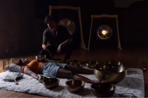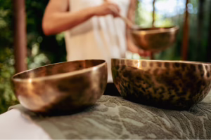 Originating from Tibetan and Himalayan traditions, the singing bowl session uses sound vibrations to deeply relax your body and mind.